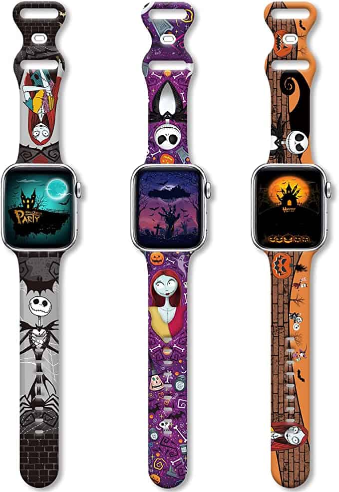 If you want to wear something Halloween inspired but don’t feel like going all out with a Halloween costume, this is for you. This set of 3 Apple watch bands features characters from the Tim Burton movie, The Night Before Christmas.